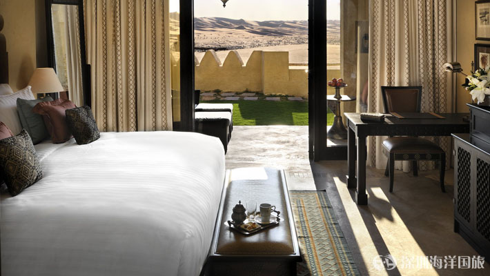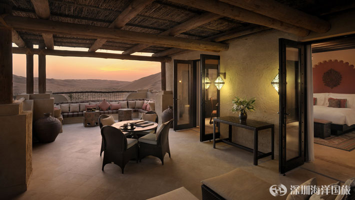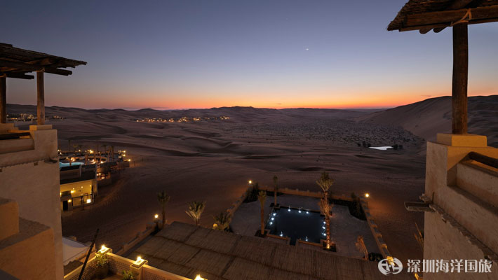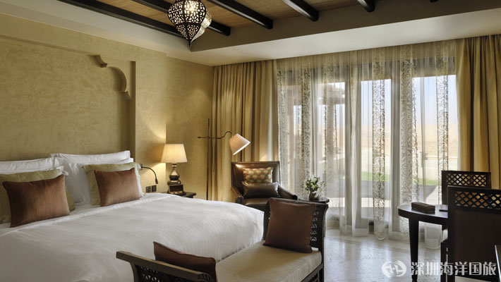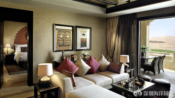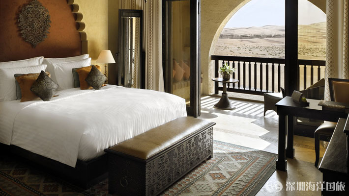 安纳塔拉盖斯尔阿萨拉(Qasr Al Sarab)沙漠度假村位于传奇性的利瓦(Liwa)沙漠——世界上最大的连续沙漠之一,为独具慧眼的游客提供一个豪华绿洲,在这令人叹为观止的美景之中展开史诗般的探险旅程。躺在私人别墅外的跳水池边,或在饰有中东纺织品和当地手工艺品的豪华沙发床上休憩放松。每个单间、别墅和套房均可俯瞰沙漠景观,将华丽的室内装潢与户外美景融为一体。