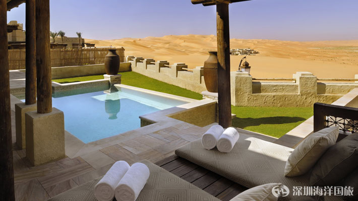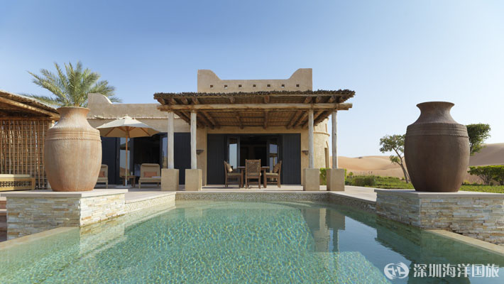 安纳塔拉Qasr al Sarab沙漠度假村的29栋安纳塔拉单卧室泳池别墅经过精心设计,完全私密,宽敞明亮,配有顶级设施。在私人跳水池畔沐浴阳光。在户外林荫下休憩放松,品尝着个性化管家服务为您调制的鸡尾酒。在户外淋浴下洗去风尘,然后到充满阿拉伯风情的客房内舒适休憩。