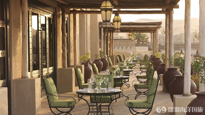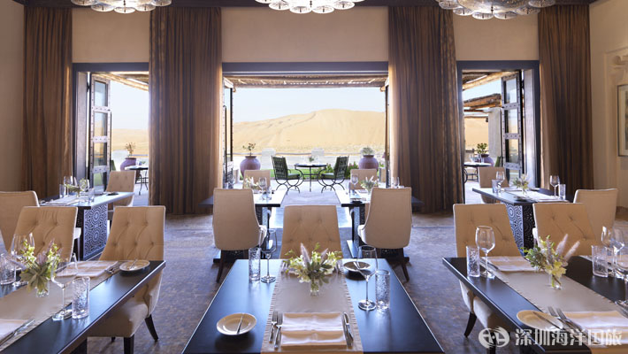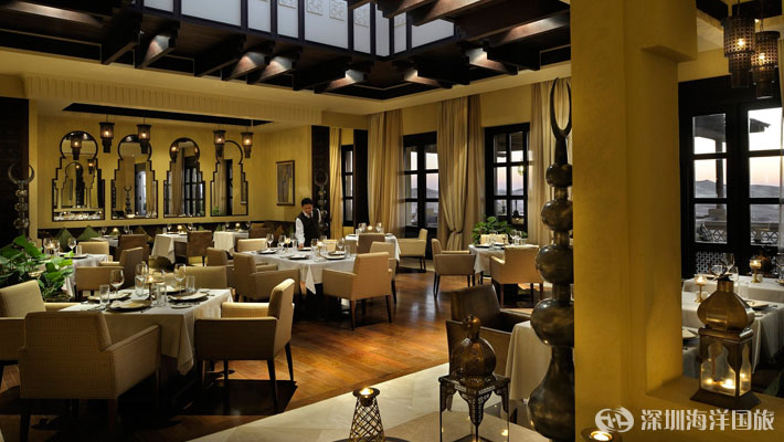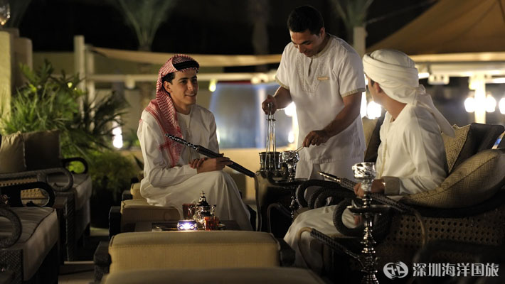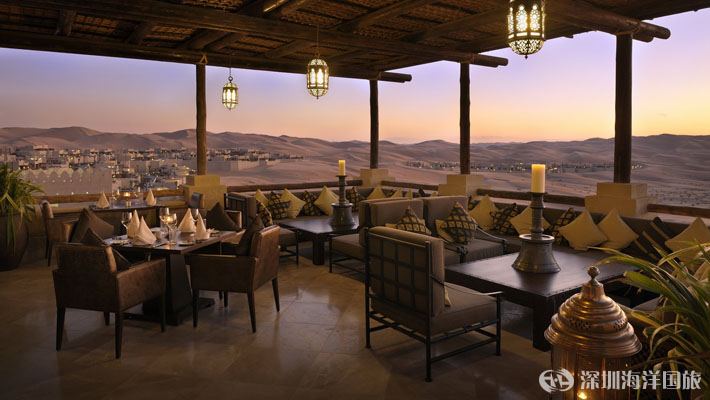 在大堂休息室的舒缓氛围中放松,品尝可口的阿拉伯咖啡、薄荷茶、阿拉伯酥点、本地特产椰枣或各种精致小食。在传统阿拉伯风格环境中方便地进行无人打扰的谈话和私密会议。在图书馆露台享受一些味道醇厚的水烟,沉醉于窗外起伏的沙丘美景。