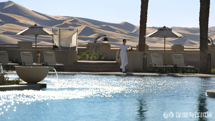 在阿布扎比“空白之地”(Empty Quarter)的神秘沙漠魅力之中体验无与伦比的豪华和舒适。骑着骆驼走在洒满阳光的沙丘上,看着这片永恒的无尽美景在您面前徐徐展开。一边泡在不规则形状的泳池里,一边看着沙漠野生动物在树荫下吃草。辉煌的阿拉伯家装材料体现了世界上最古老、最令人敬畏的文化之一。