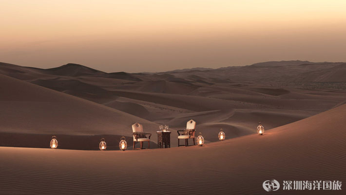 于金色沙丘之间,一边享用由您的私人管家伺候的浪漫招牌晚餐,一边欣赏日落。 用餐地点不拘一格,任您想象,逍遥自在。请注意,这项体验受天气条件限制,并且在7月1日至9月15日和12月20日至1月6日期间不会提供。