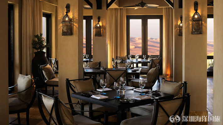 盖斯尔阿萨拉沙漠度假村拥有无尽选择的全球顶级美食,环境精致优美,可满足您对美食的一切渴求。我们的阿布扎比沙漠餐厅提供中东最精美的菜肴以及全球各地的缤纷美食。传统菜肴配上最好的进口肉食、名目繁多的葡萄酒和香槟酒、优雅的就餐地点和私密的小餐厅。